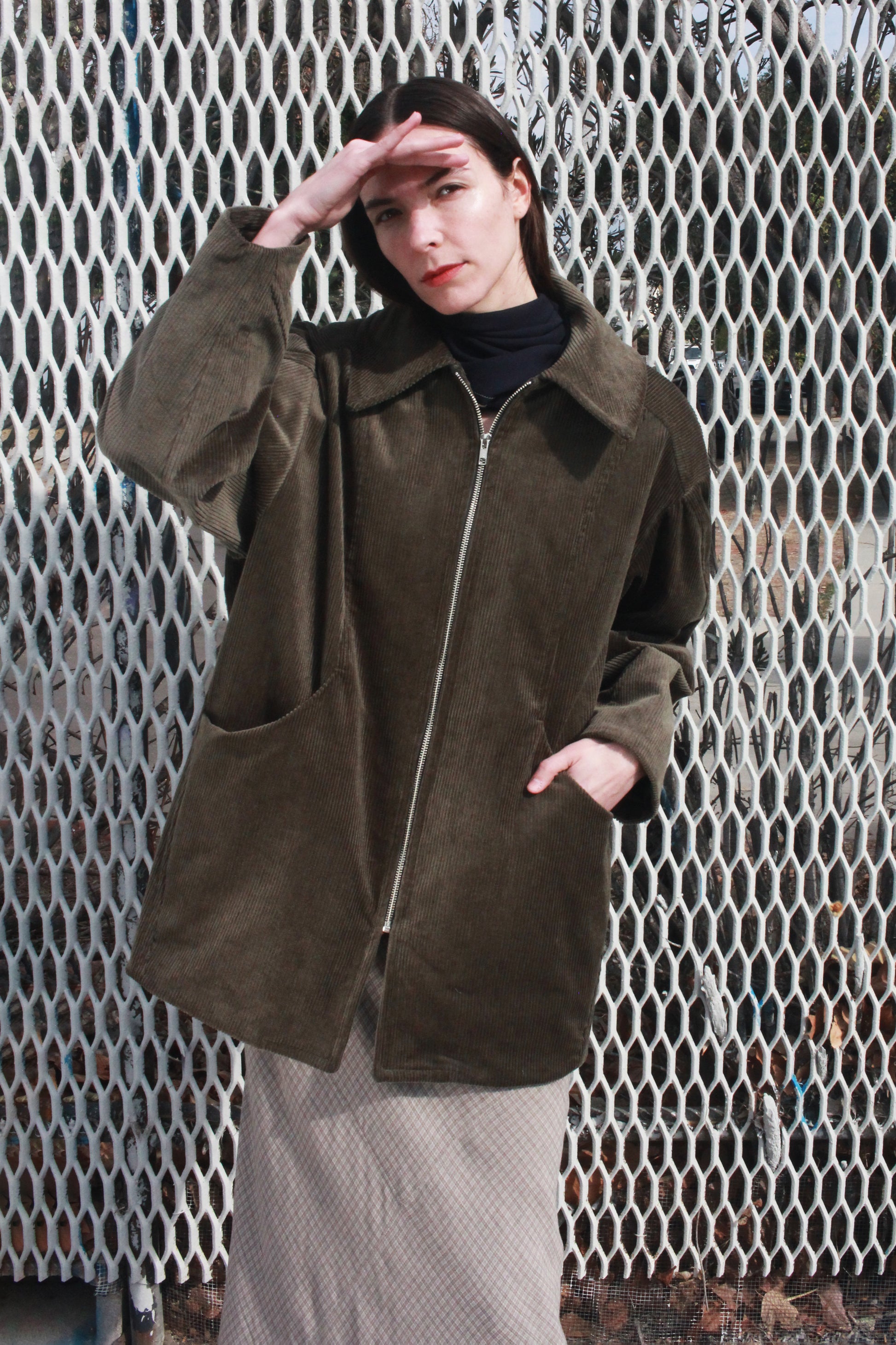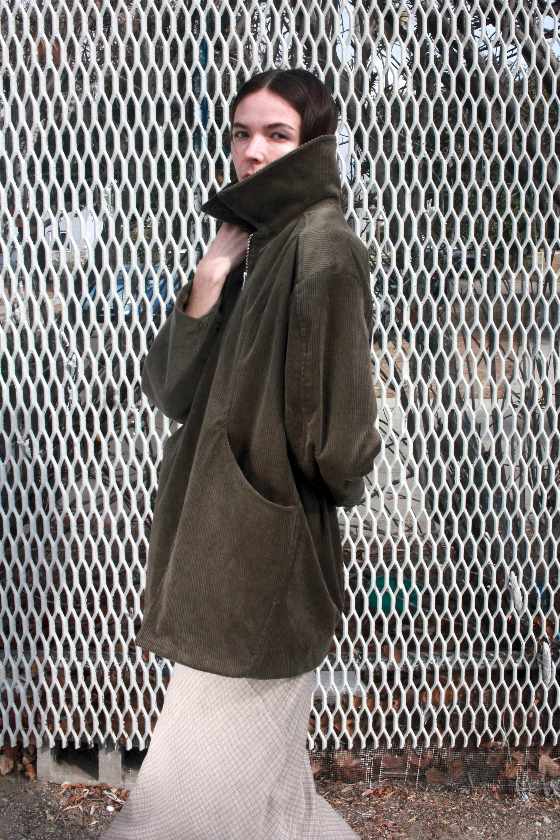 A fully lined jacket with softly curved shoulders and seaming details juxtaposing a bold collar and exposed metal zipper. Oversized pockets hold all your essentials as you run out the door blissfully unburdened by a bag. A wardrobe staple, you'll find this piece mingles just as nicely with a casual look as it does with something more elevated.